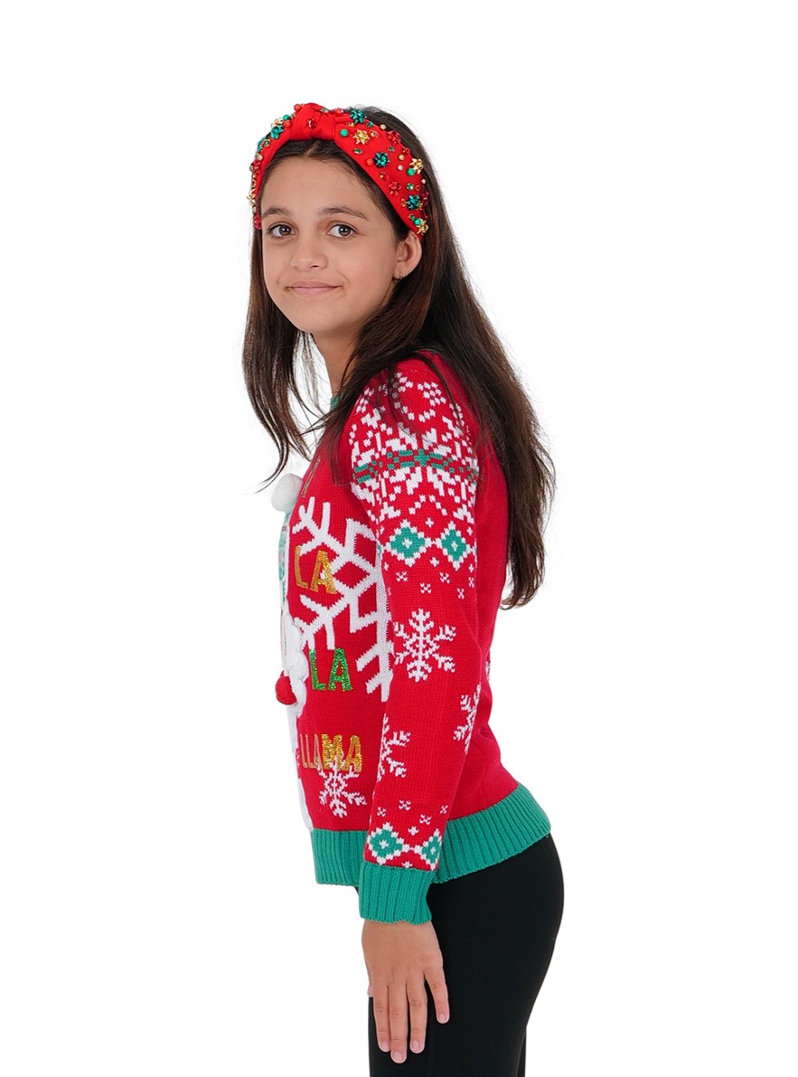 Introducing the Jollidays Girls Fa La La Llama Ugly Christmas Sweater, a whimsical and heartwarming addition to your little one’s holiday wardrobe! This sweater brings festive cheer to a whole new level with its adorable llama adorned in holiday attire and the playful “Fa La La” message. Crafted from soft, premium materials, it ensures comfort and warmth during those chilly holiday gatherings. The charming design adds a dose of merriment and personality, making it a must-have for spreading joy at any Christmas celebration. Embrace the spirit of the season with the Jollidays Girls Fa La La Llama Ugly Christmas Sweater, a delightful choice for making cherished holiday memories