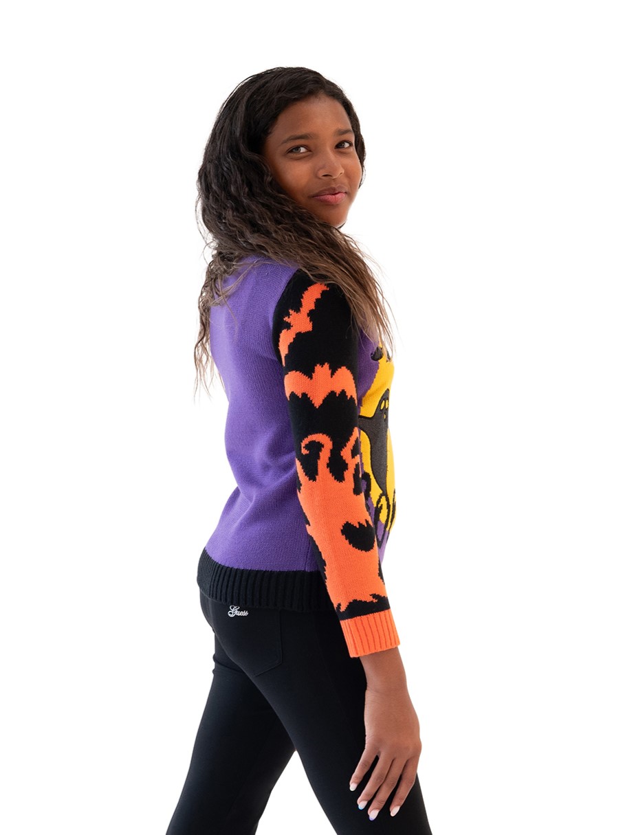 Step into the spirit of Halloween with the Jollidays Girls Haunted House Pullover Sweater! Crafted for comfort and spook-tacular style, this sweater features a charming haunted house design, perfect for festive gatherings or cozy nights in. Available in sizes S to XL, it offers a snug fit for all. Embrace the season’s festivities with this bewitching addition to your wardrobe, sure to enchant on chilly autumn nights.