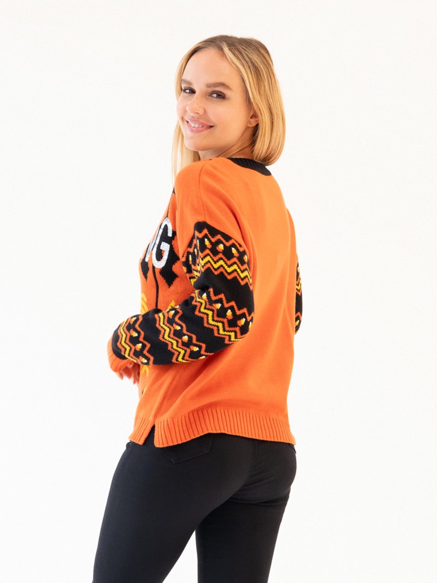 Unleash your spooky style with the Jollidays Women’s Let’s Hang Halloween Pullover Sweater! Featuring a whimsical bat motif against a cozy backdrop, this sweater embodies the essence of Halloween fun. Available in sizes S to XXL, it offers a comfortable and flattering fit for every ghoul. Whether you’re haunting the neighborhood or cuddling up by the fire, this sweater is the perfect way to celebrate the season in style.
