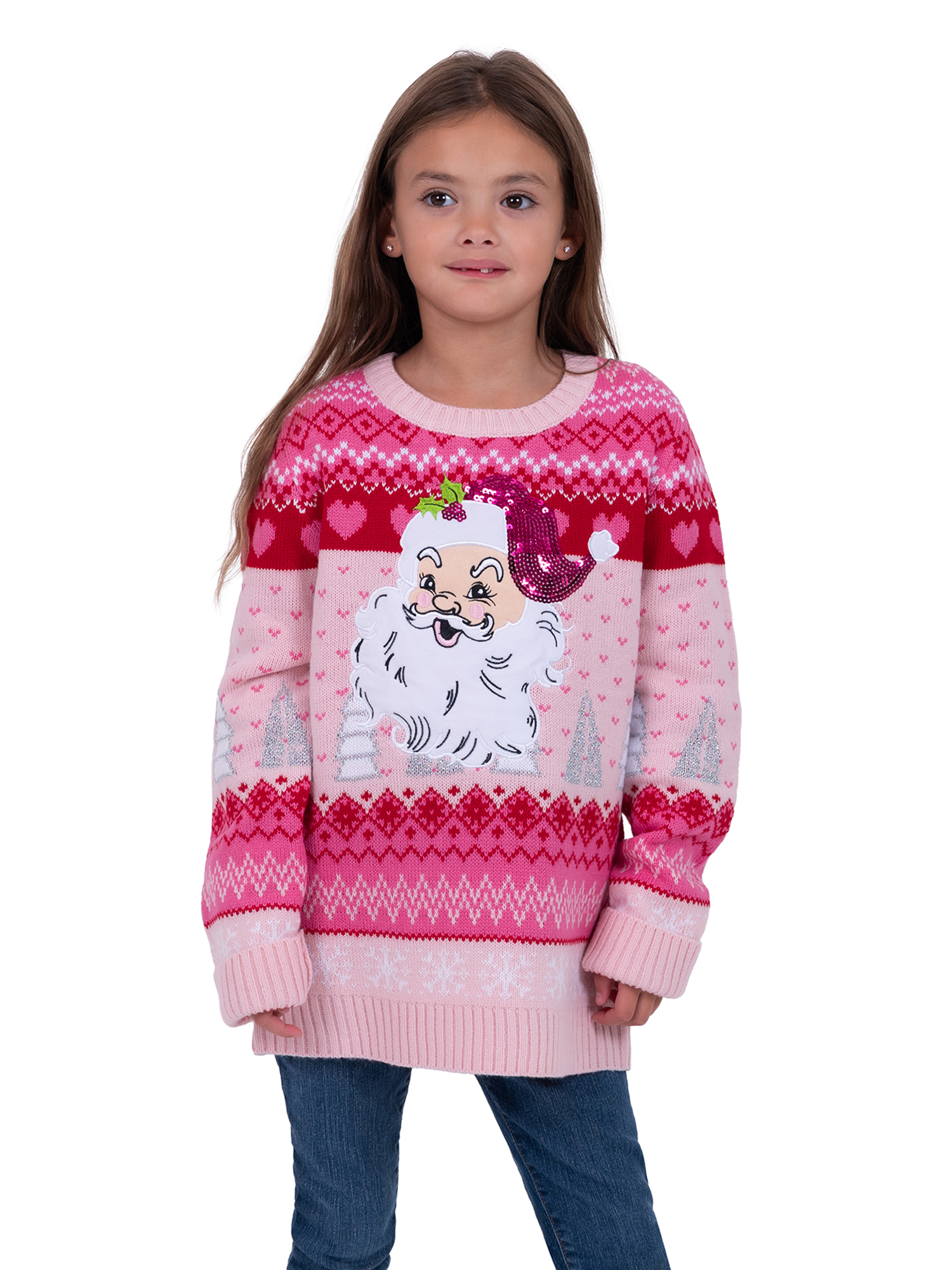 Ho-ho-holiday cheer starts here with the Jollidays Girls’ Santa Sweater! Featuring a jolly Santa front and center, this long-sleeve crewneck is designed to spread smiles all season long. The soft knit keeps her cozy during chilly days, while the playful design brings festive magic to school events, holiday parties, or Christmas Eve traditions. Easy to style with jeans, skirts, or leggings, it’s a versatile piece that makes every outfit merry and bright. Available in sizes S–XL, this sweater is the perfect pick for girls who love fun, comfort, and festive spirit rolled into one joyful look.